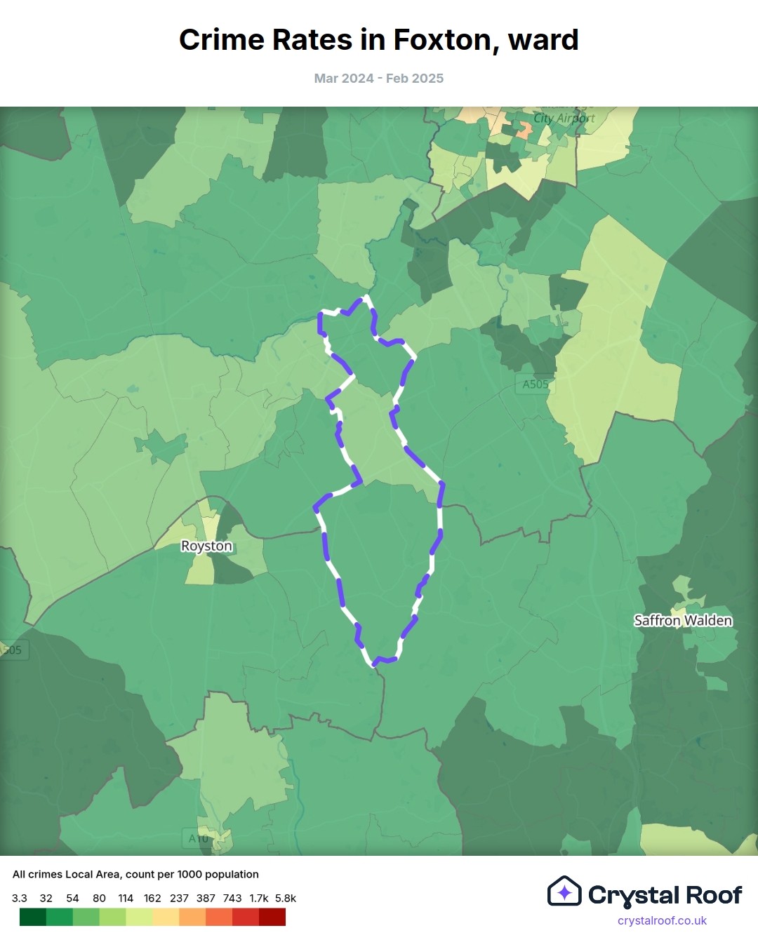 Foxton, (ward) includes areas with the following crime ratings (see map):