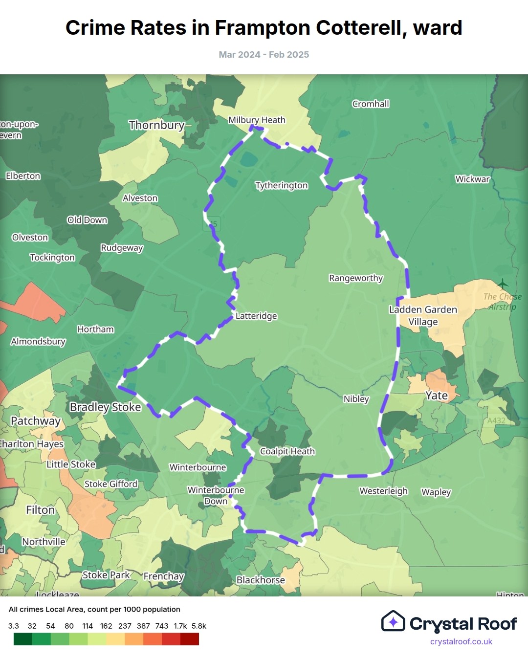 Frampton Cotterell, (ward) includes areas with the following crime ratings (see map):