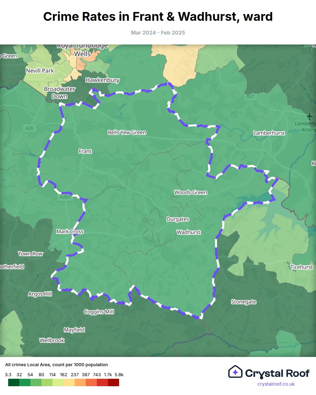 Frant & Wadhurst, (ward) includes areas with the following crime ratings (see map):