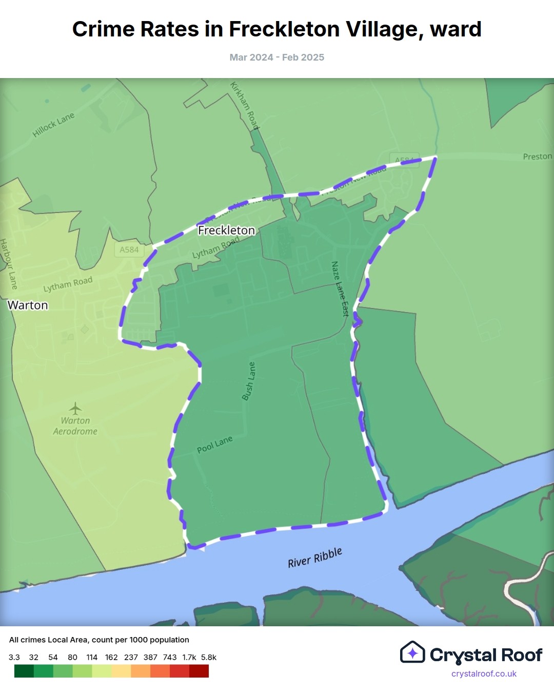 Freckleton Village, (ward) includes areas with the following crime ratings (see map):