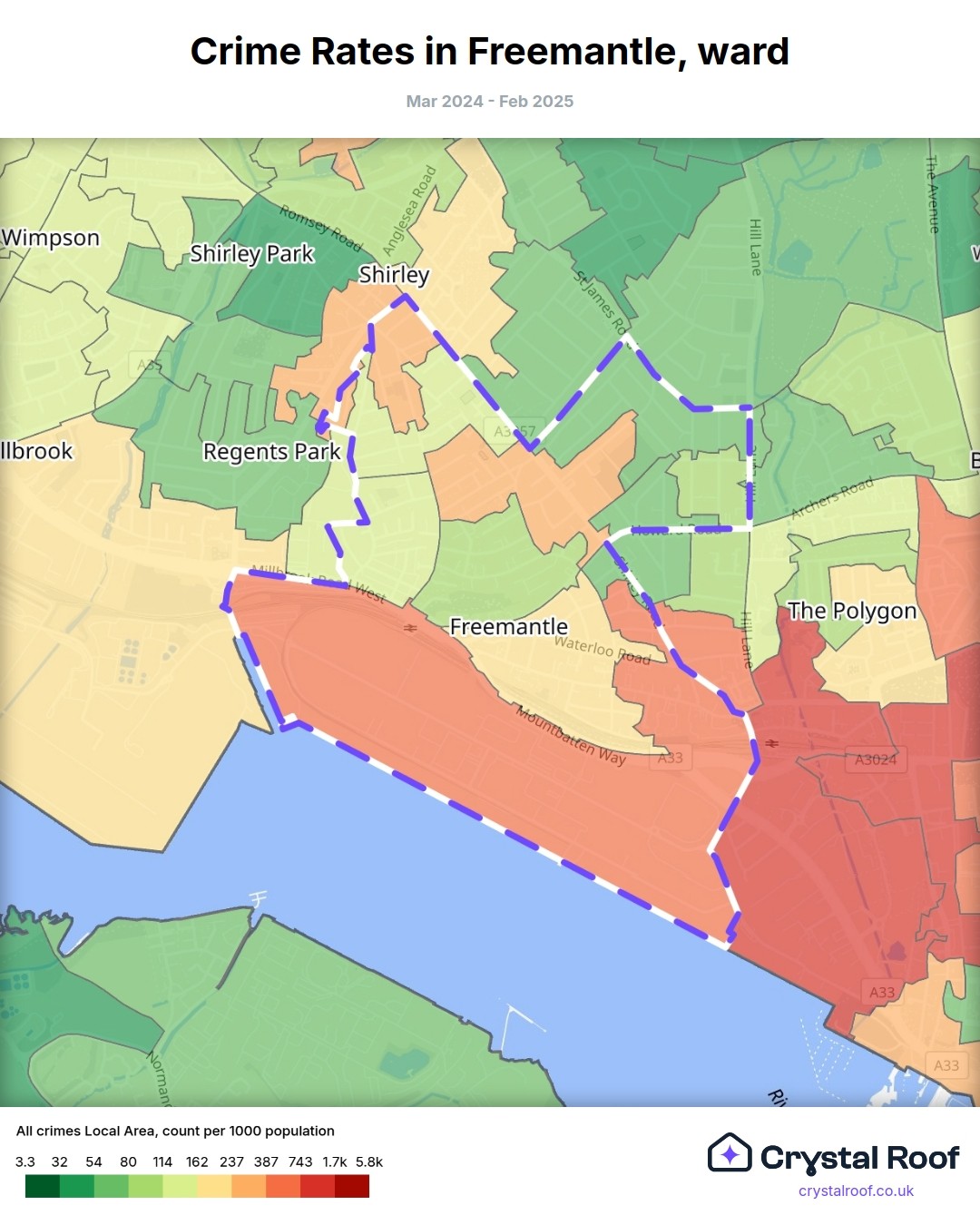 Freemantle, (ward) includes areas with the following crime ratings (see map):