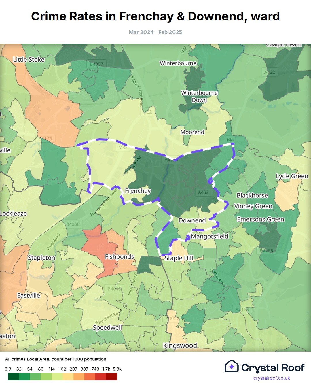 Frenchay & Downend, (ward) includes areas with the following crime ratings (see map):