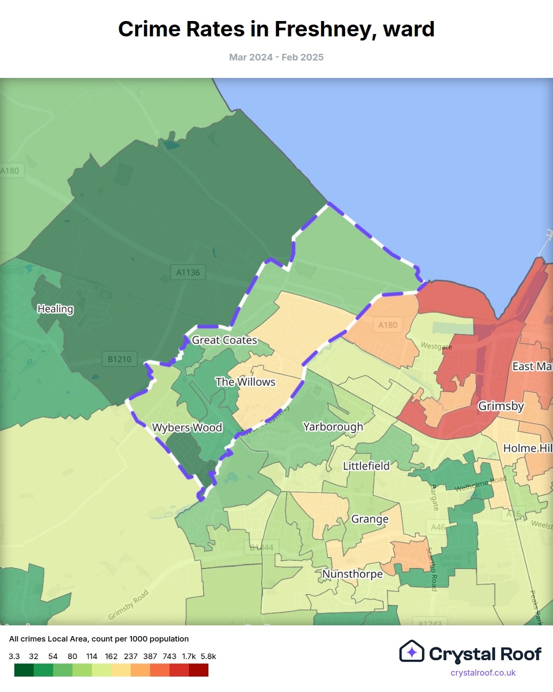 Freshney, (ward) includes areas with the following crime ratings (see map):