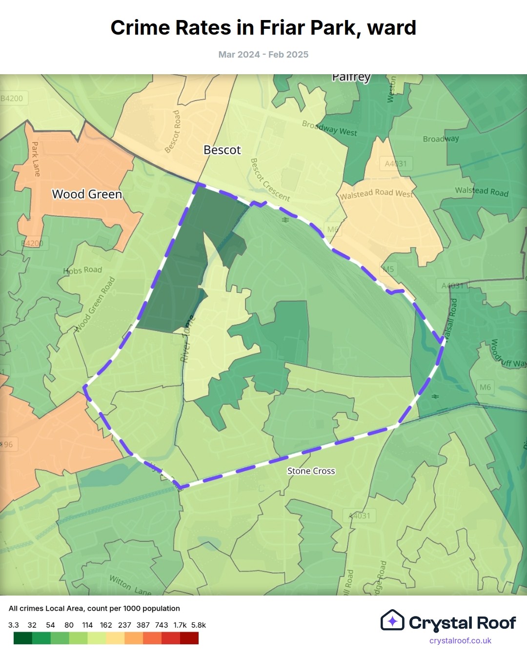 Friar Park, (ward) includes areas with the following crime ratings (see map):