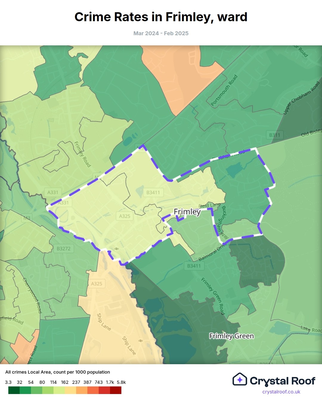 Frimley, (ward) includes areas with the following crime ratings (see map):