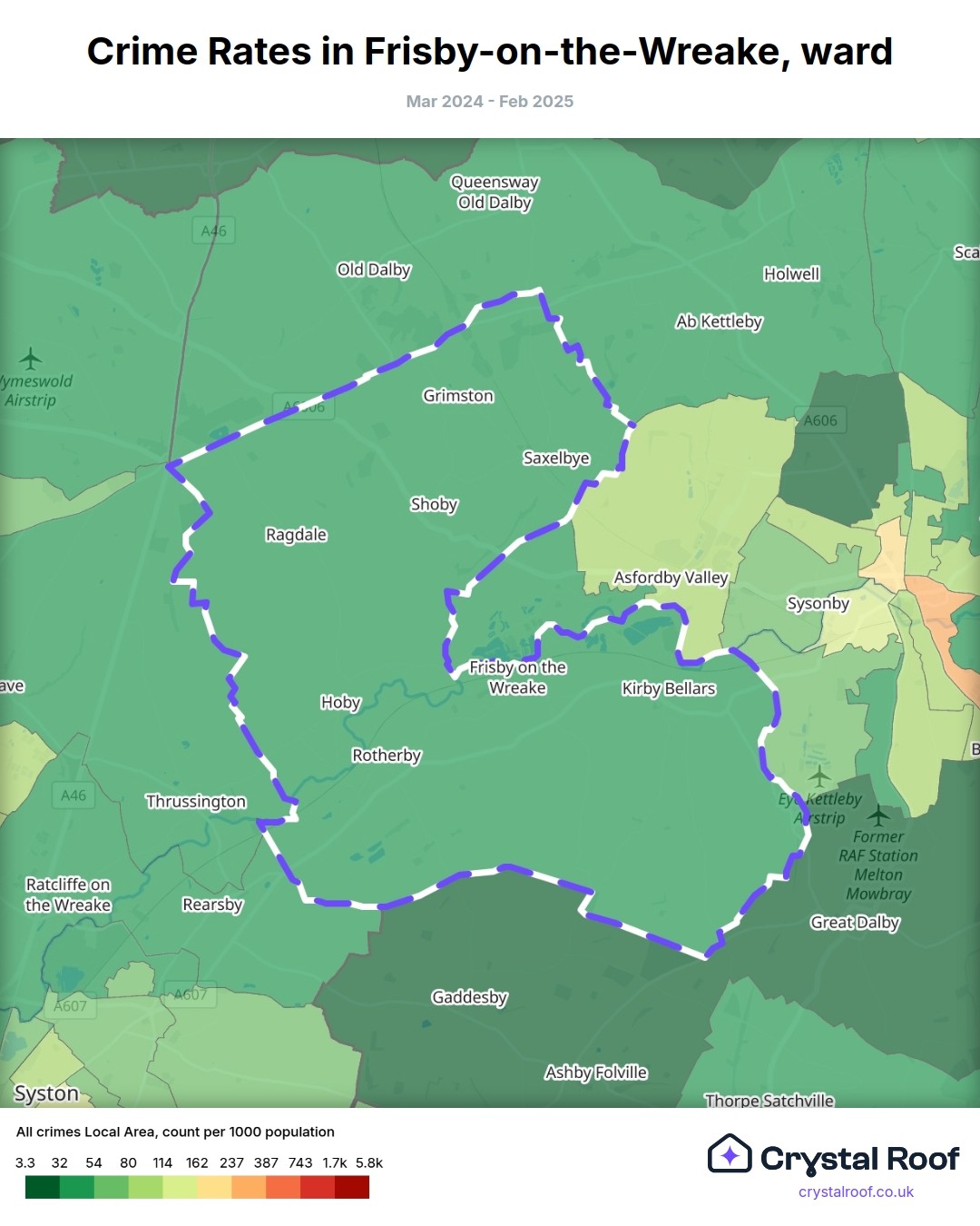 Frisby-on-the-Wreake, (ward) includes areas with the following crime ratings (see map):