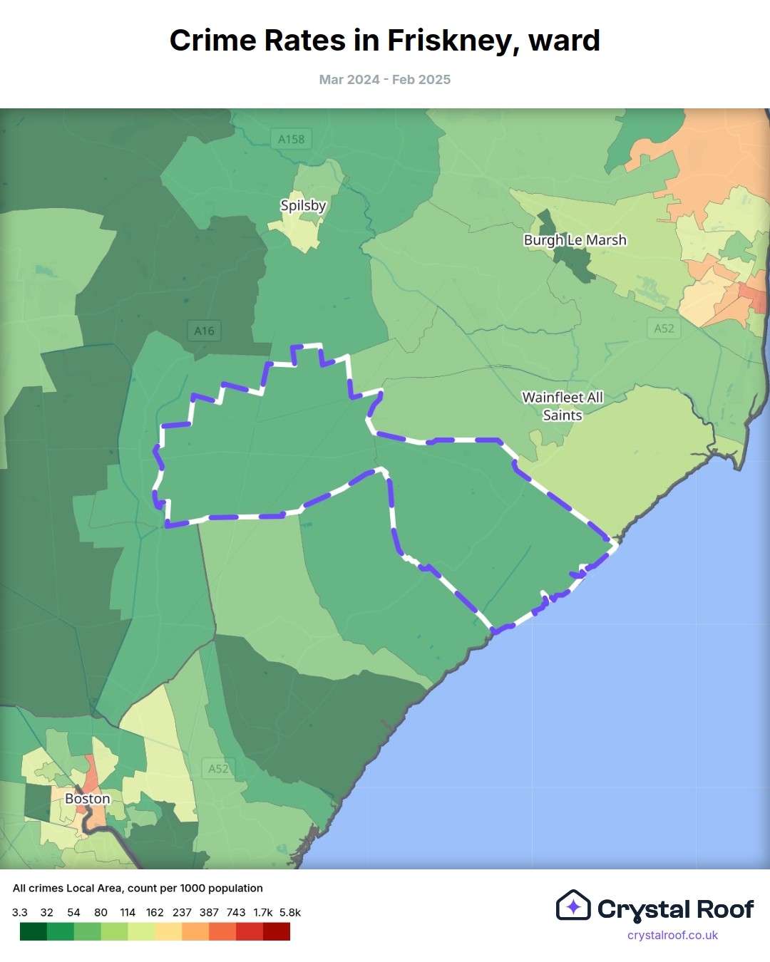 Friskney, (ward) includes areas with the following crime ratings (see map):