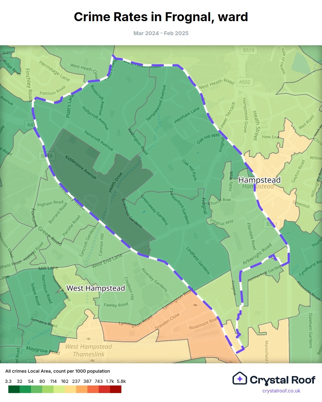 Frognal, (ward) includes areas with the following crime ratings (see map):