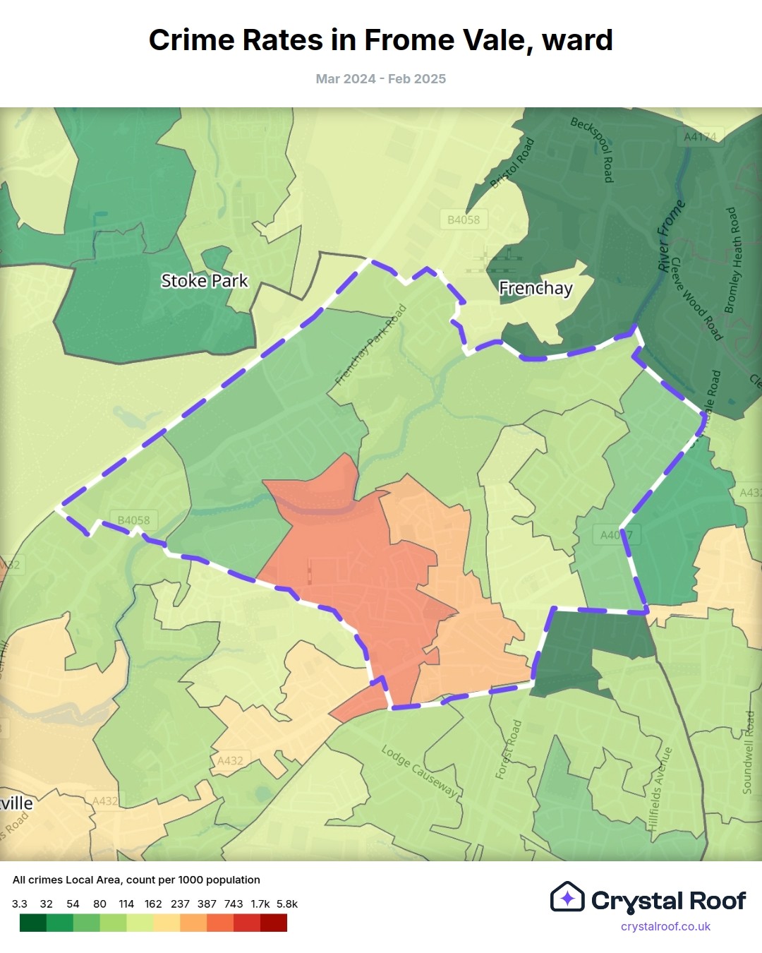 Frome Vale, (ward) includes areas with the following crime ratings (see map):