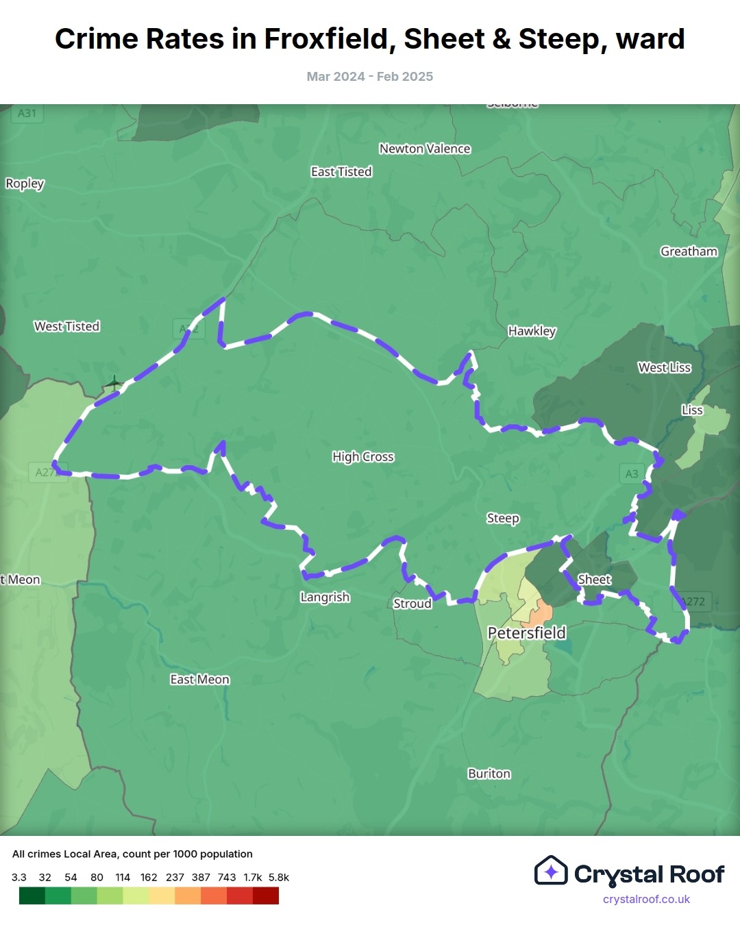 Froxfield, Sheet & Steep, (ward) includes areas with the following crime ratings (see map):