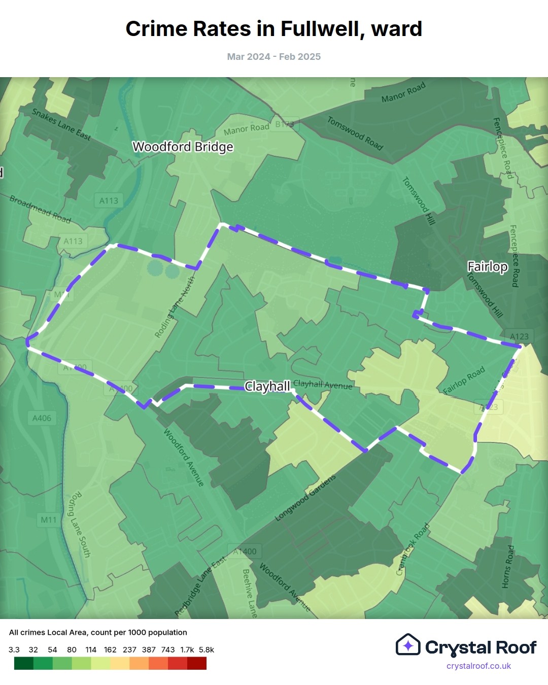 Fullwell, (ward) includes areas with the following crime ratings (see map):