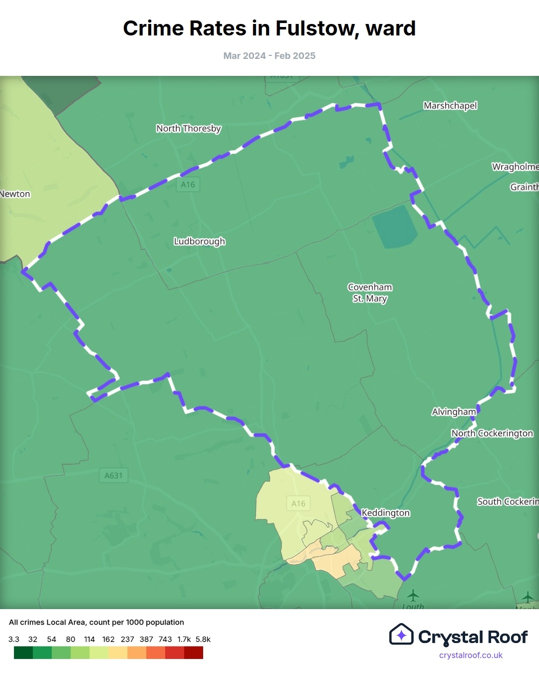 Fulstow, (ward) includes areas with the following crime ratings (see map):
