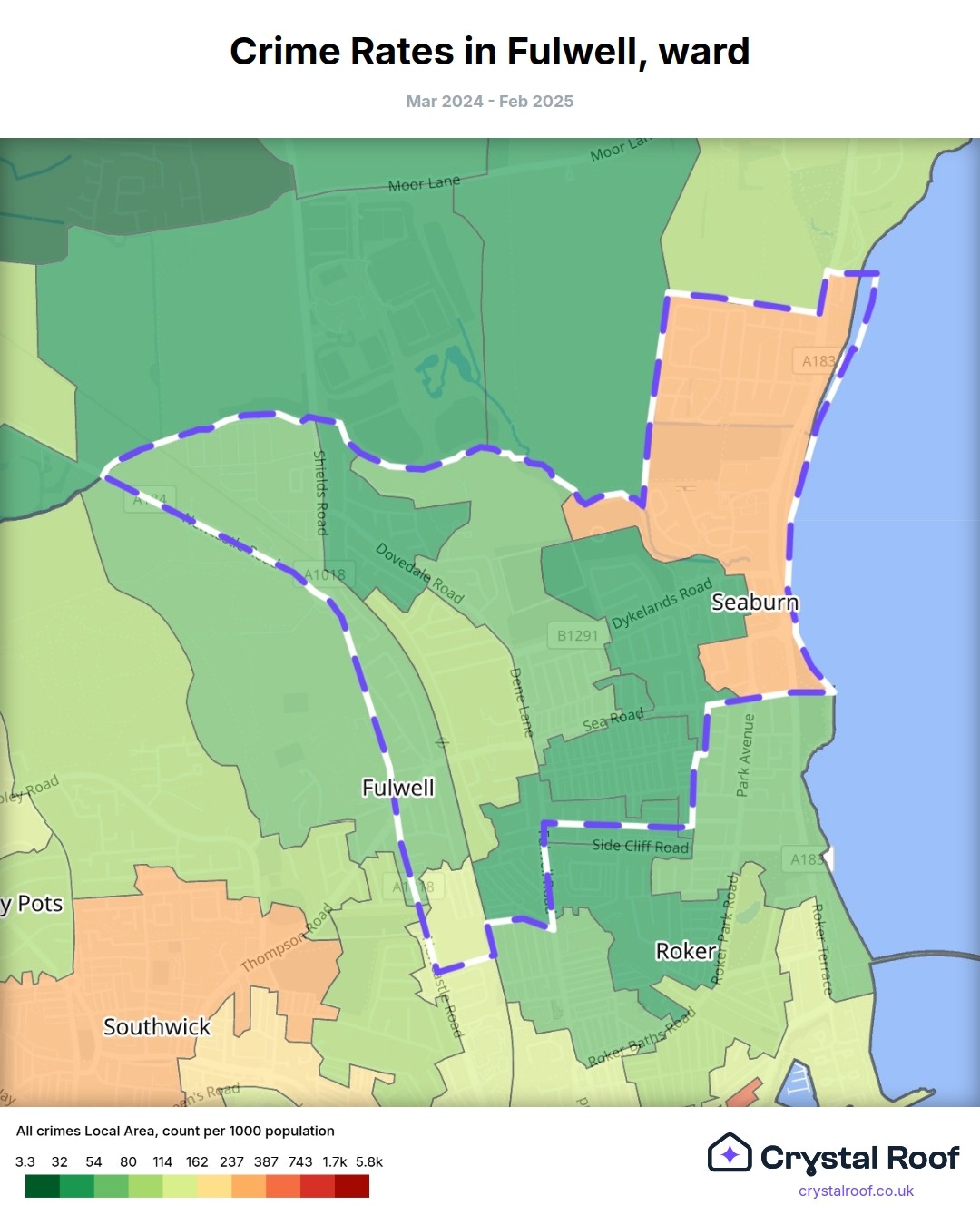 Fulwell, (ward) includes areas with the following crime ratings (see map):