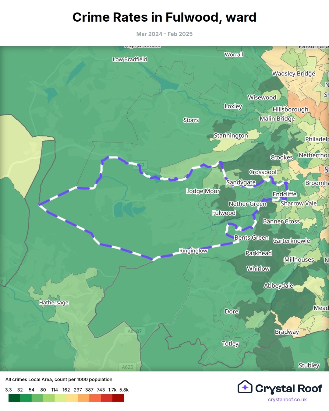 Fulwood, (ward) includes areas with the following crime ratings (see map):