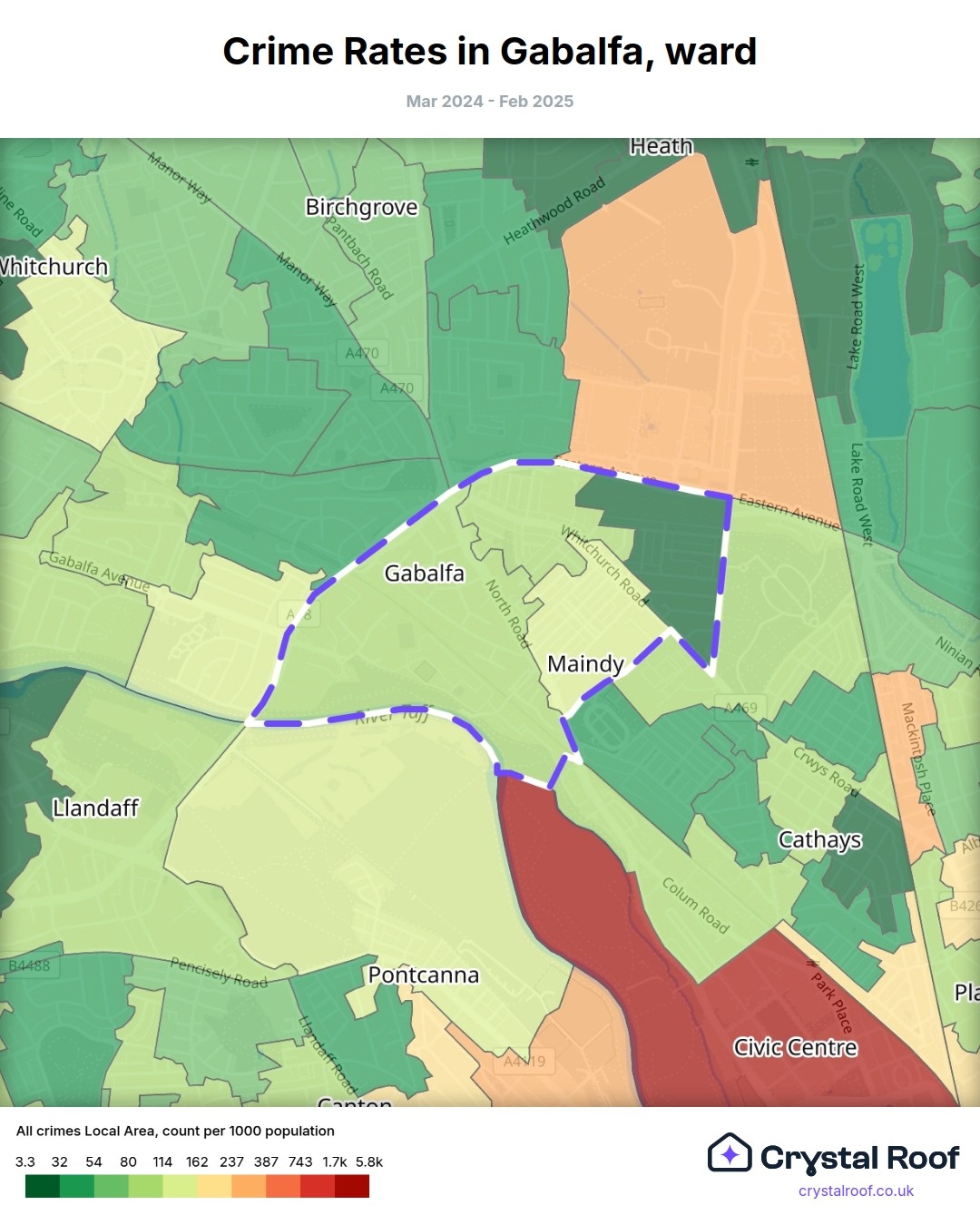 Gabalfa, (ward) includes areas with the following crime ratings (see map):