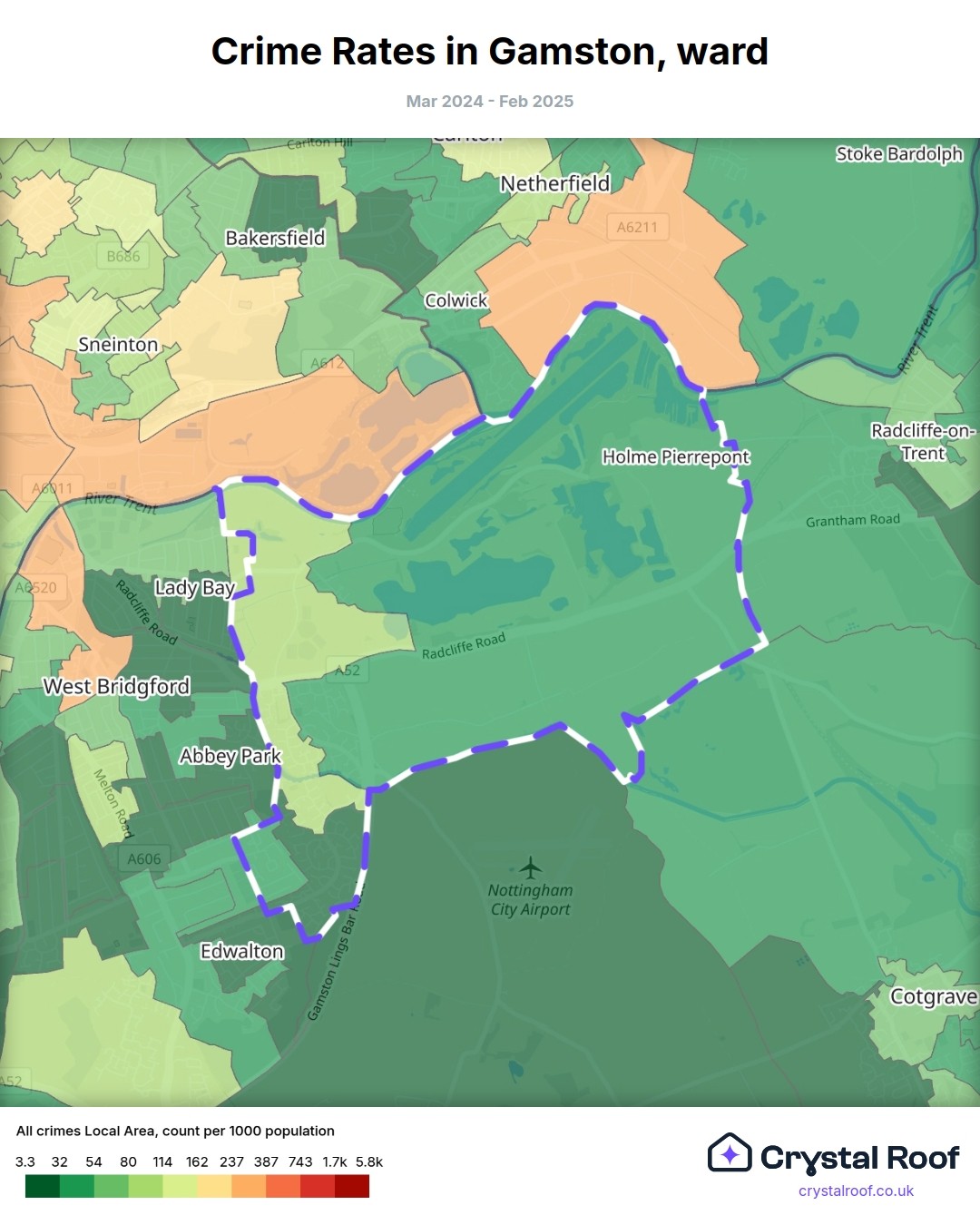Gamston, (ward) includes areas with the following crime ratings (see map):