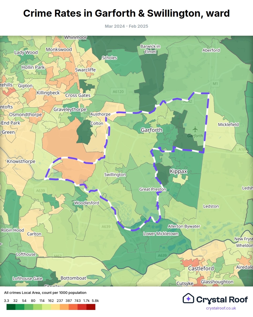 Garforth & Swillington, (ward) includes areas with the following crime ratings (see map):