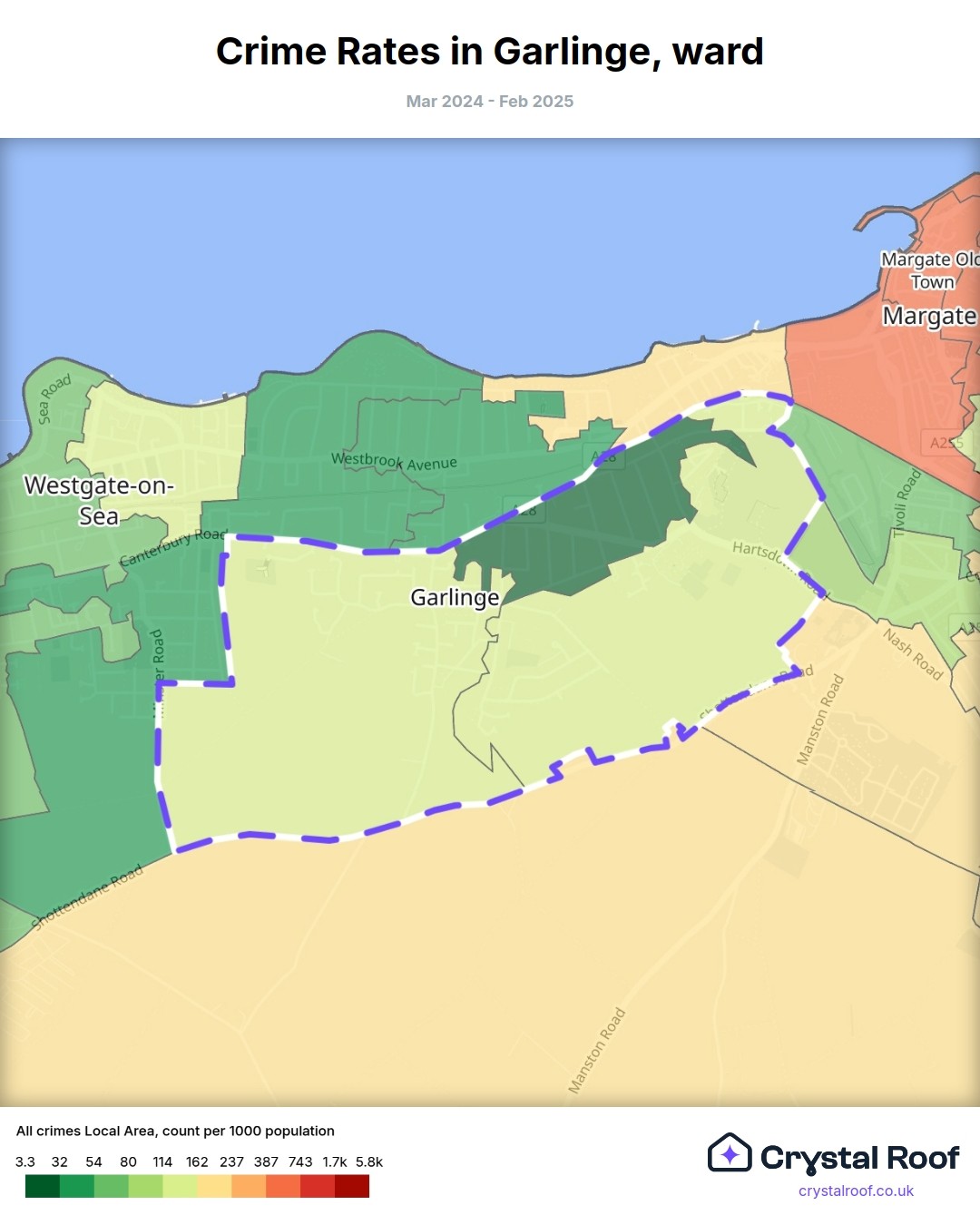 Garlinge, (ward) includes areas with the following crime ratings (see map):