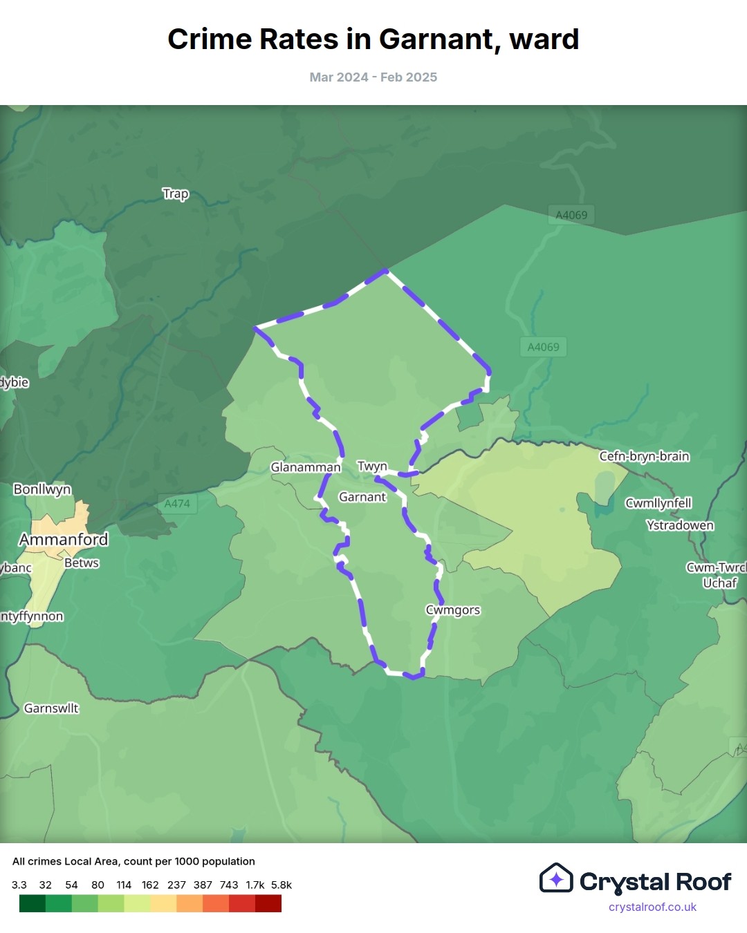 Garnant, (ward) includes areas with the following crime ratings (see map):