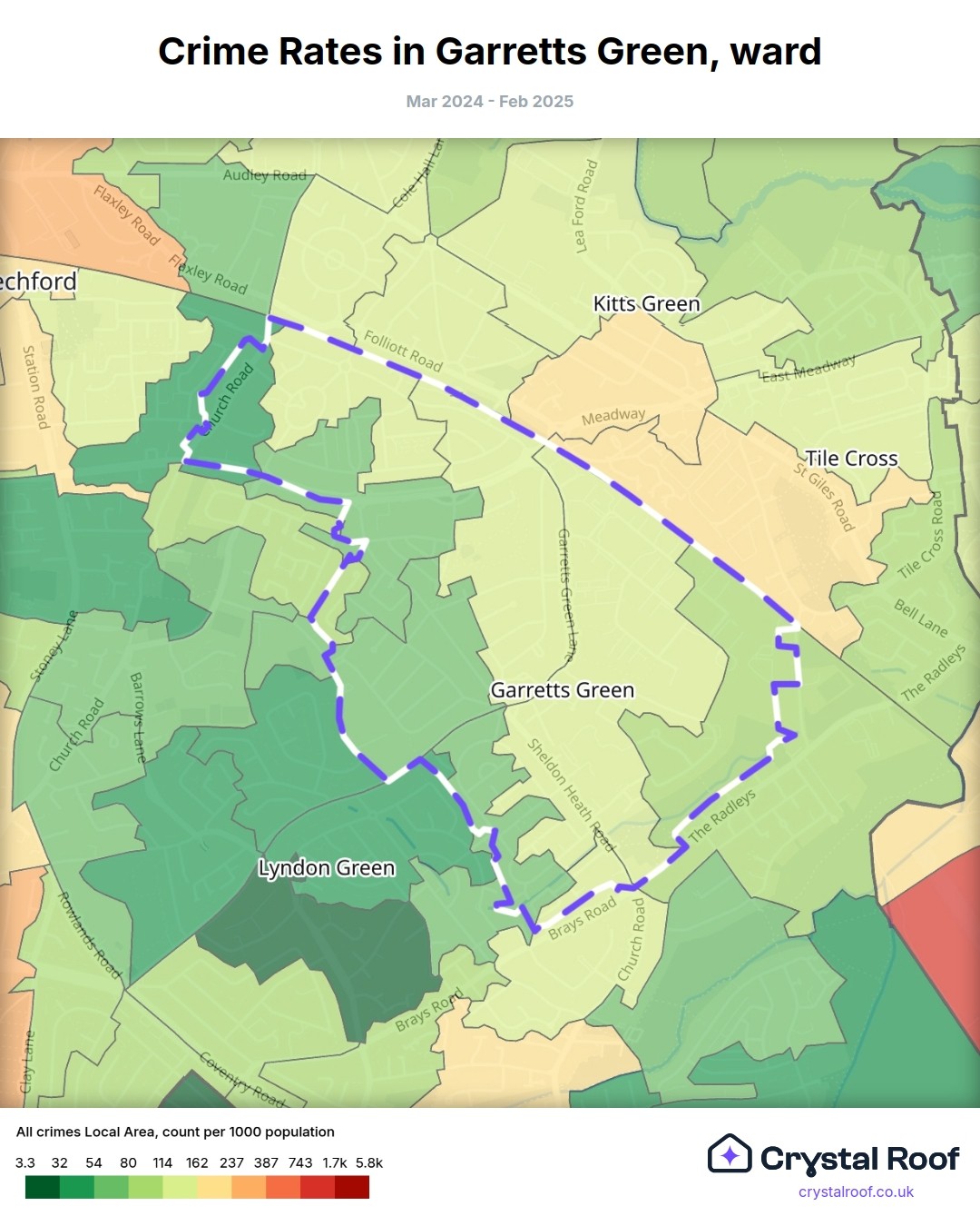 Garretts Green, (ward) includes areas with the following crime ratings (see map):