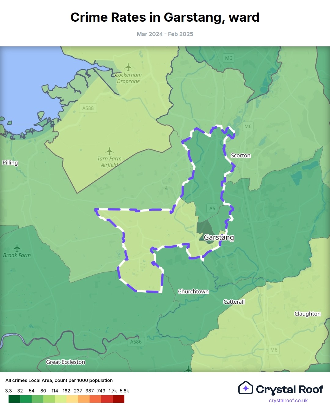 Garstang, (ward) includes areas with the following crime ratings (see map):