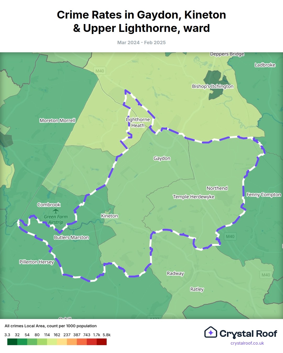 Gaydon, Kineton & Upper Lighthorne, (ward) includes areas with the following crime ratings (see map):