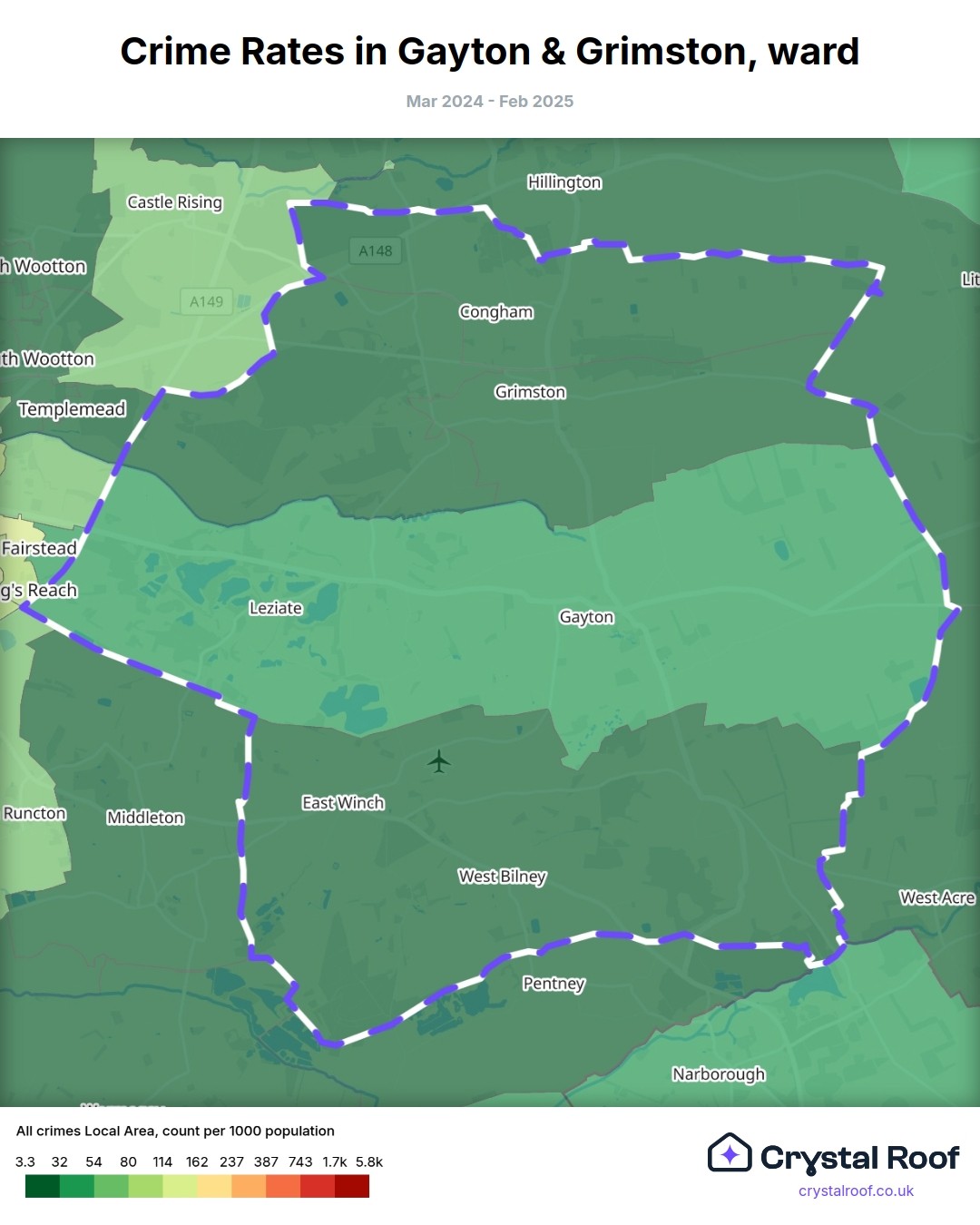 Gayton & Grimston, (ward) includes areas with the following crime ratings (see map):
