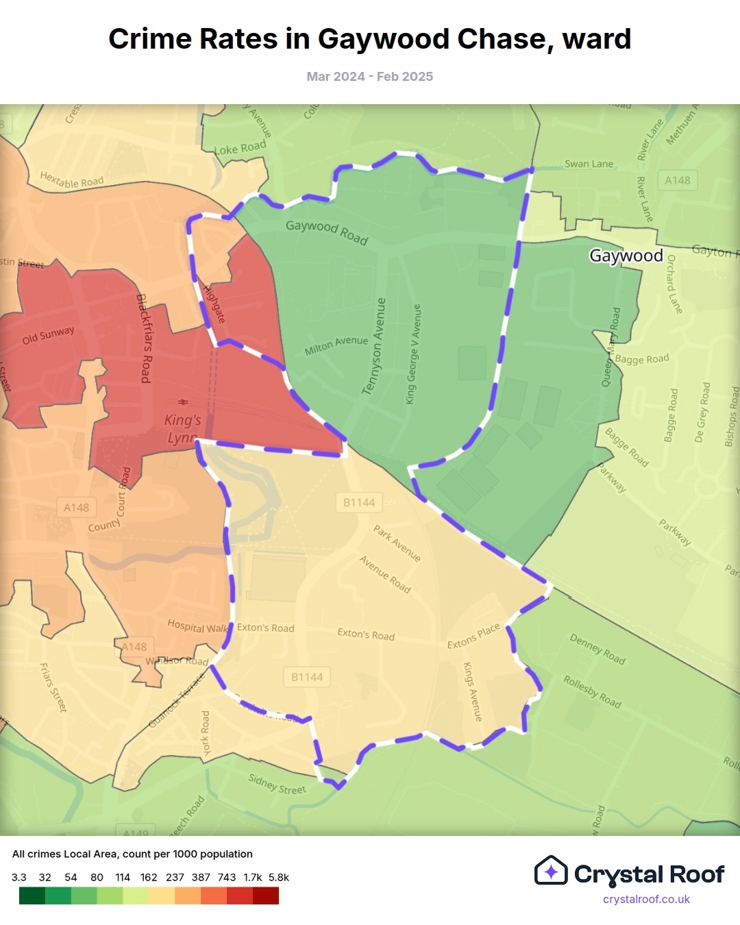 Gaywood Chase, (ward) includes areas with the following crime ratings (see map):