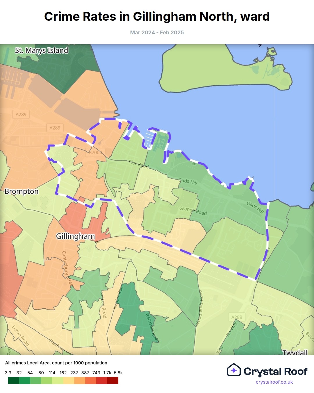 Gillingham North, (ward) includes areas with the following crime ratings (see map):