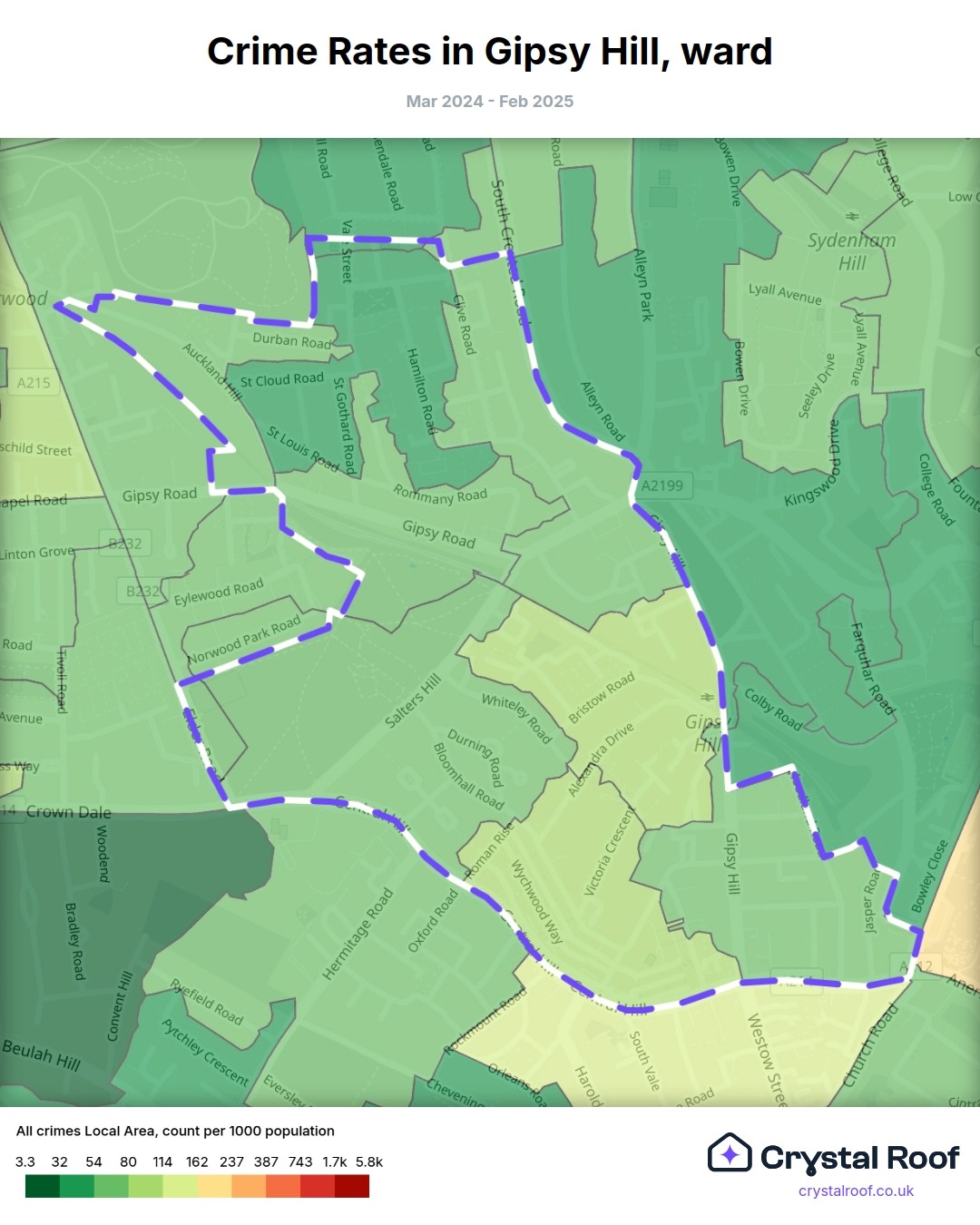 Gipsy Hill, (ward) includes areas with the following crime ratings (see map):