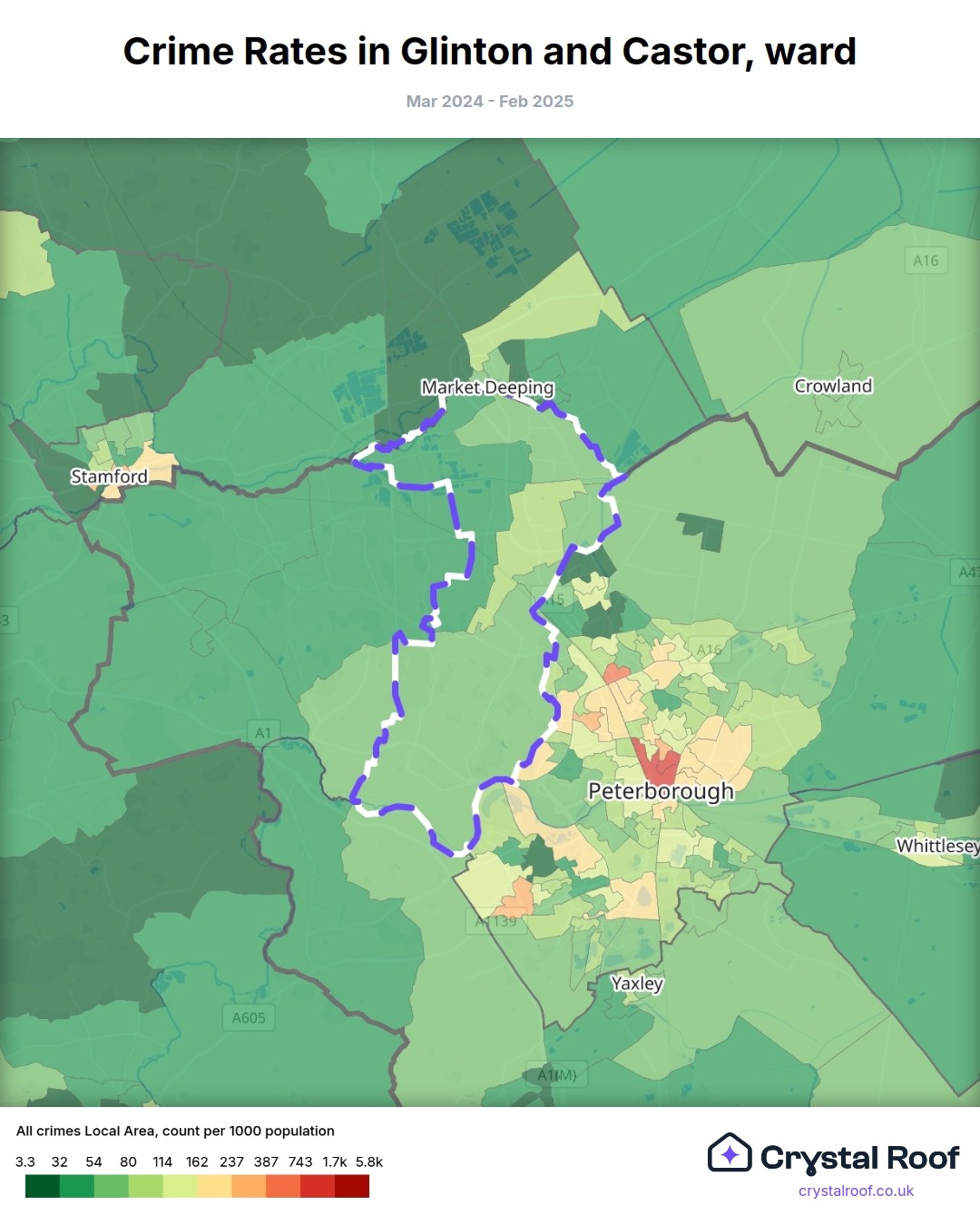 Glinton and Castor, (ward) includes areas with the following crime ratings (see map):