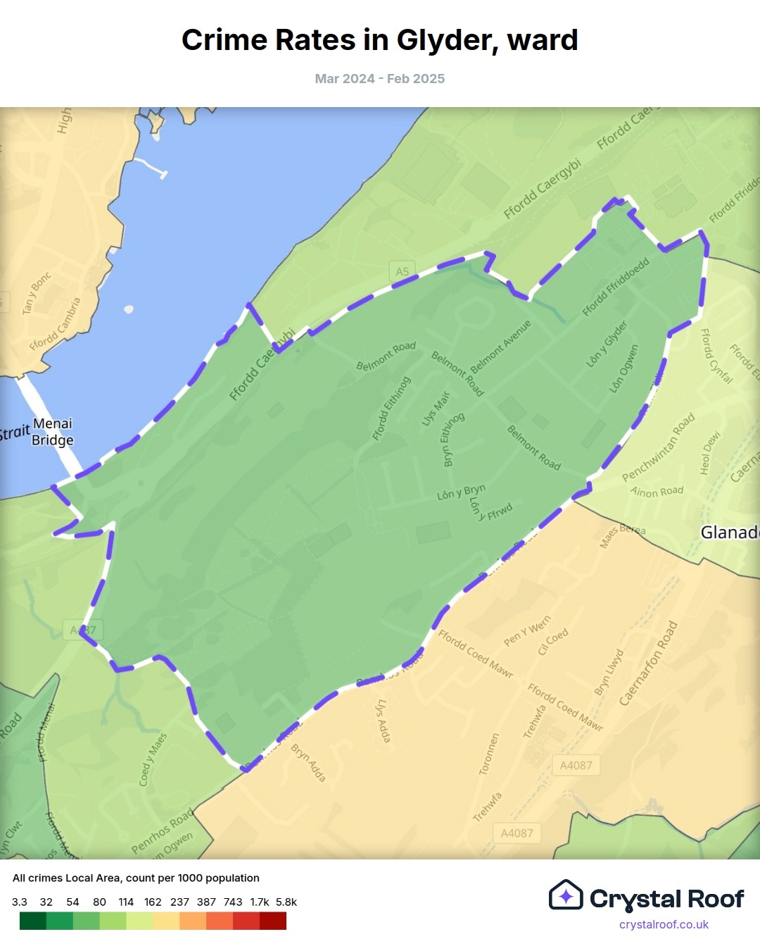 Glyder, (ward) includes areas with the following crime ratings (see map):