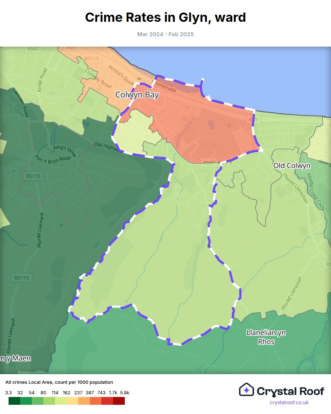 Glyn, (ward) includes areas with the following crime ratings (see map):