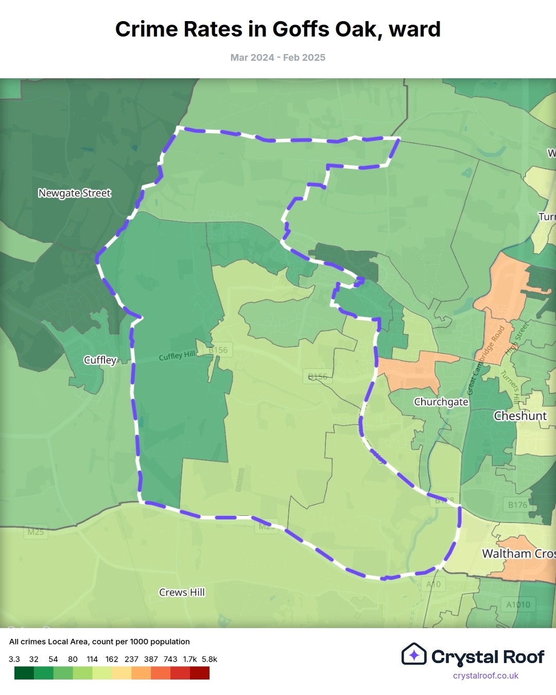 Goffs Oak, (ward) includes areas with the following crime ratings (see map):
