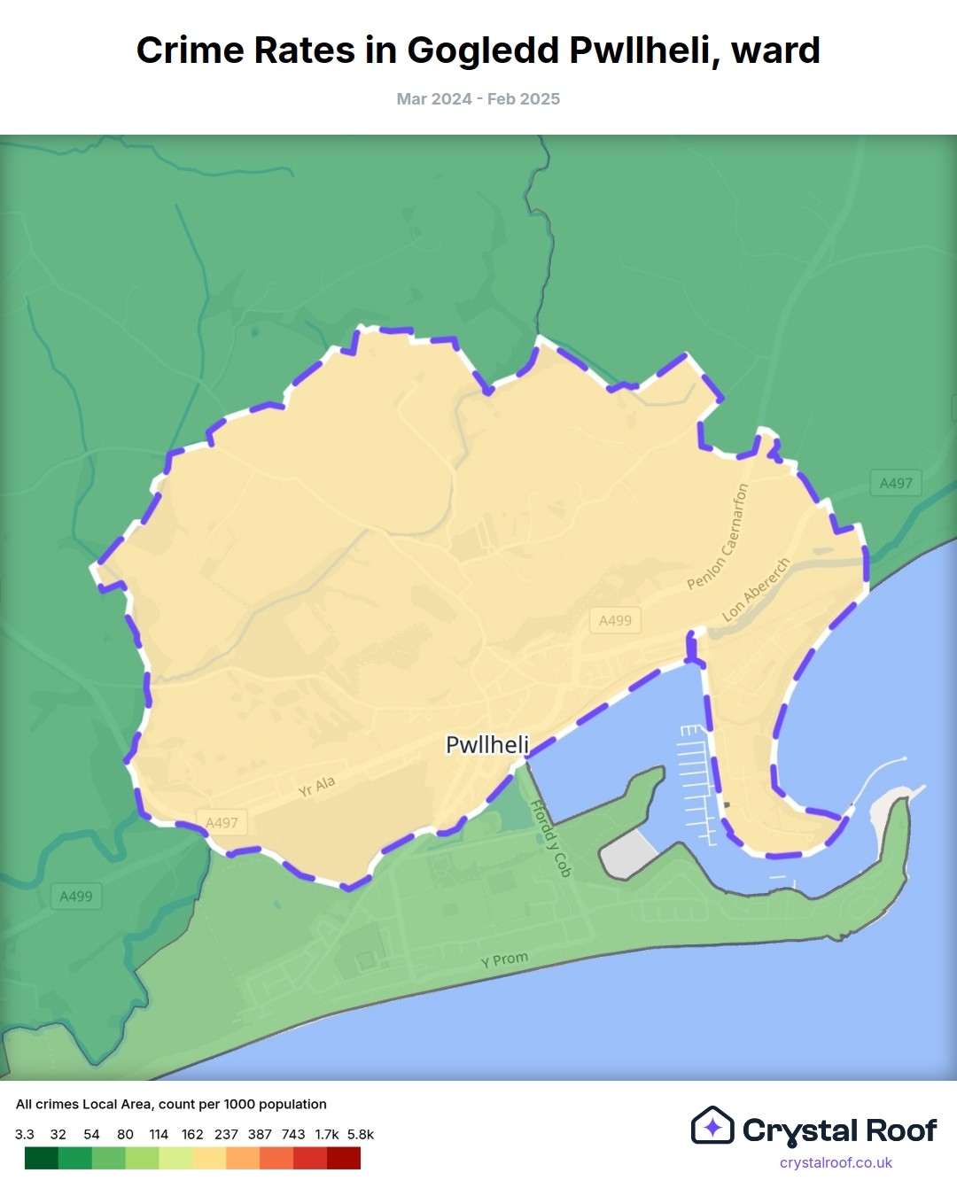 Gogledd Pwllheli, (ward) includes areas with the following crime ratings (see map):