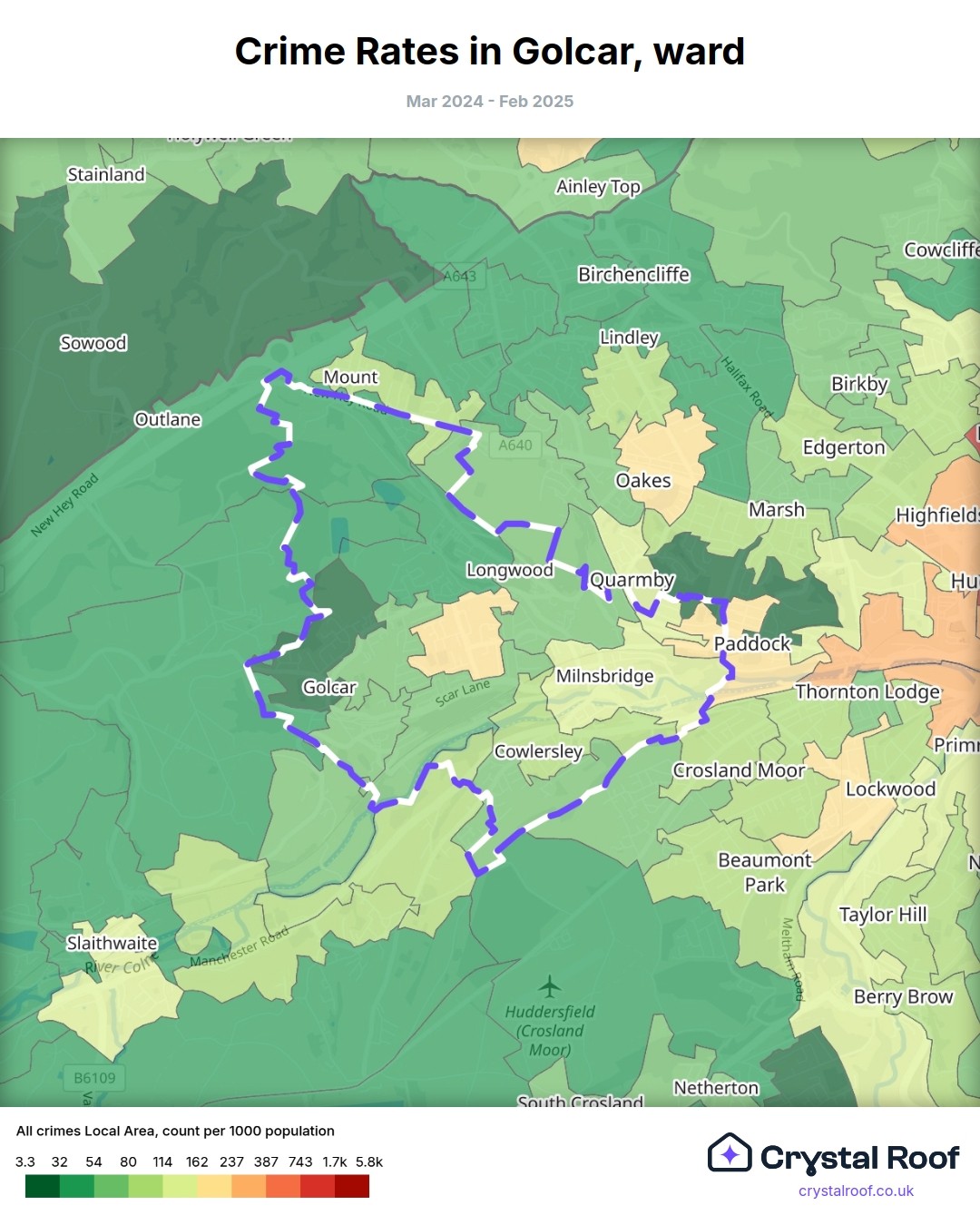 Golcar, (ward) includes areas with the following crime ratings (see map):