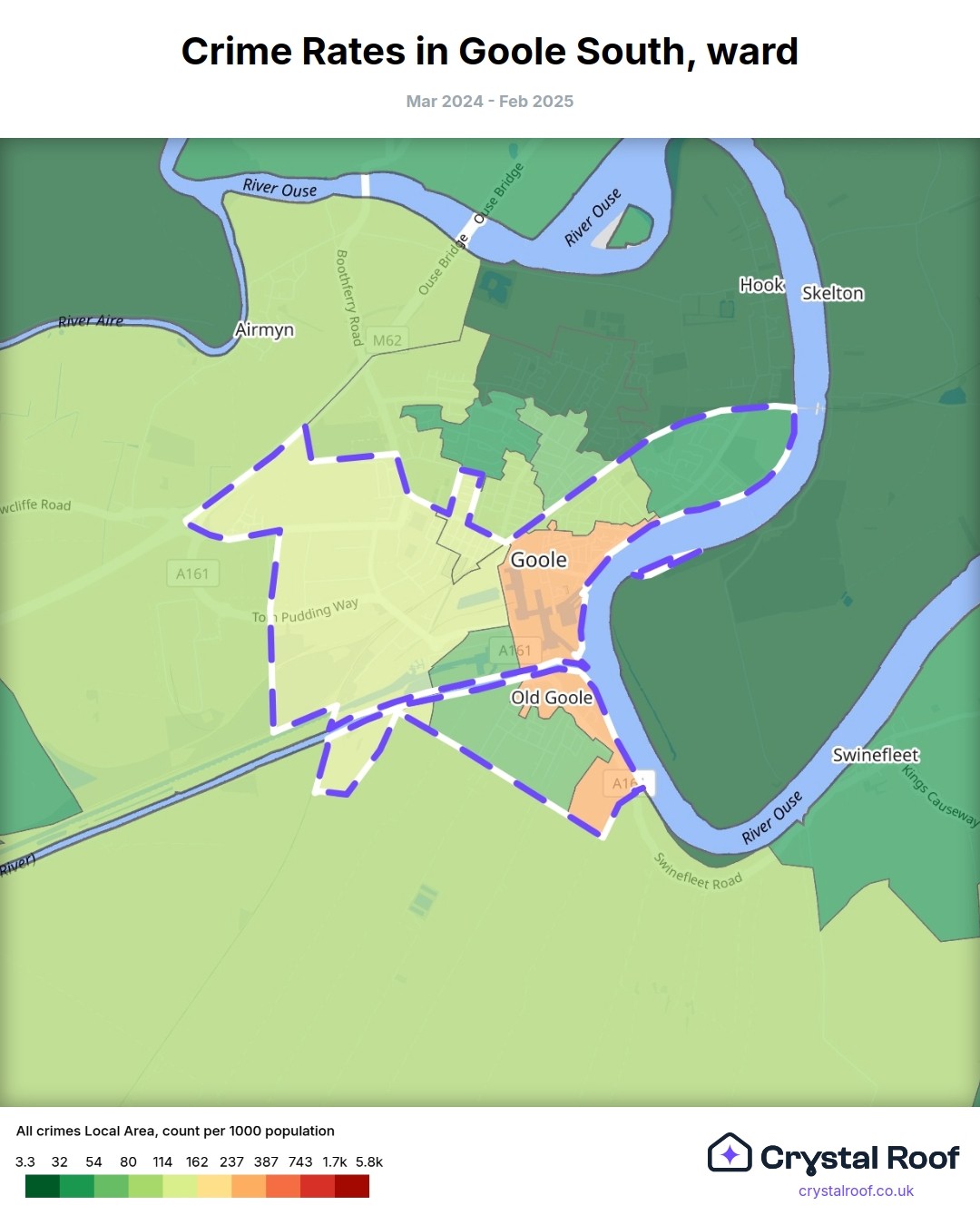 Goole South, (ward) includes areas with the following crime ratings (see map):