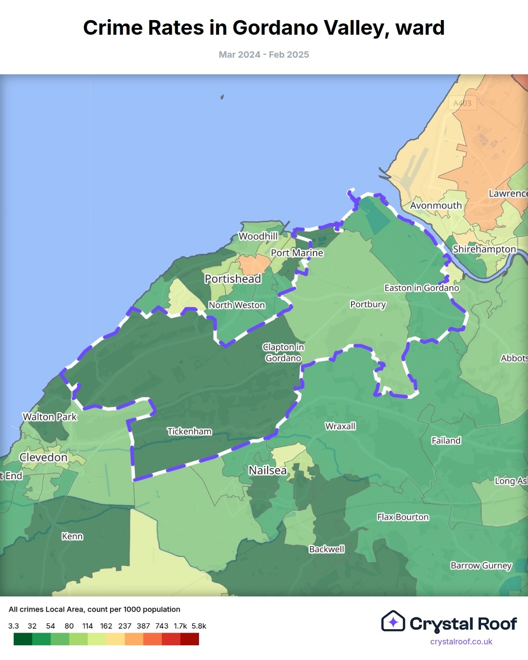 Gordano Valley, (ward) includes areas with the following crime ratings (see map):
