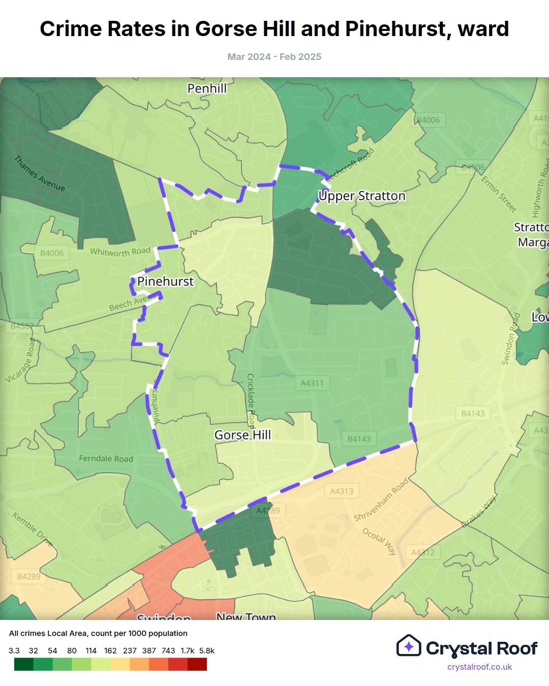 Gorse Hill and Pinehurst, (ward) includes areas with the following crime ratings (see map):