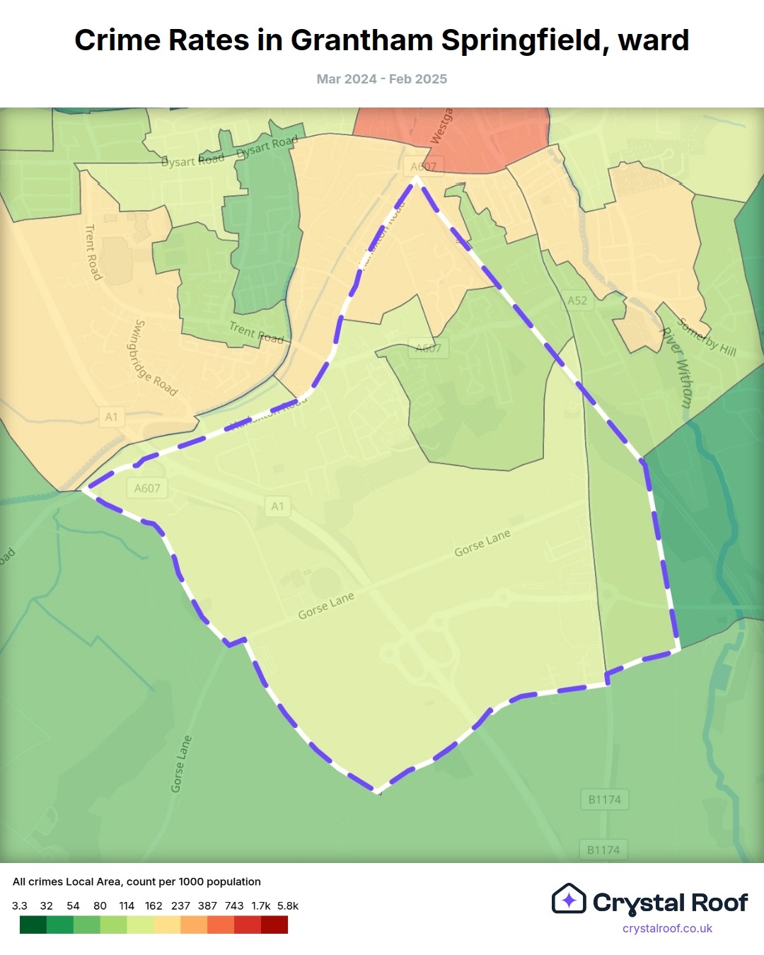 Grantham Springfield, (ward) includes areas with the following crime ratings (see map):