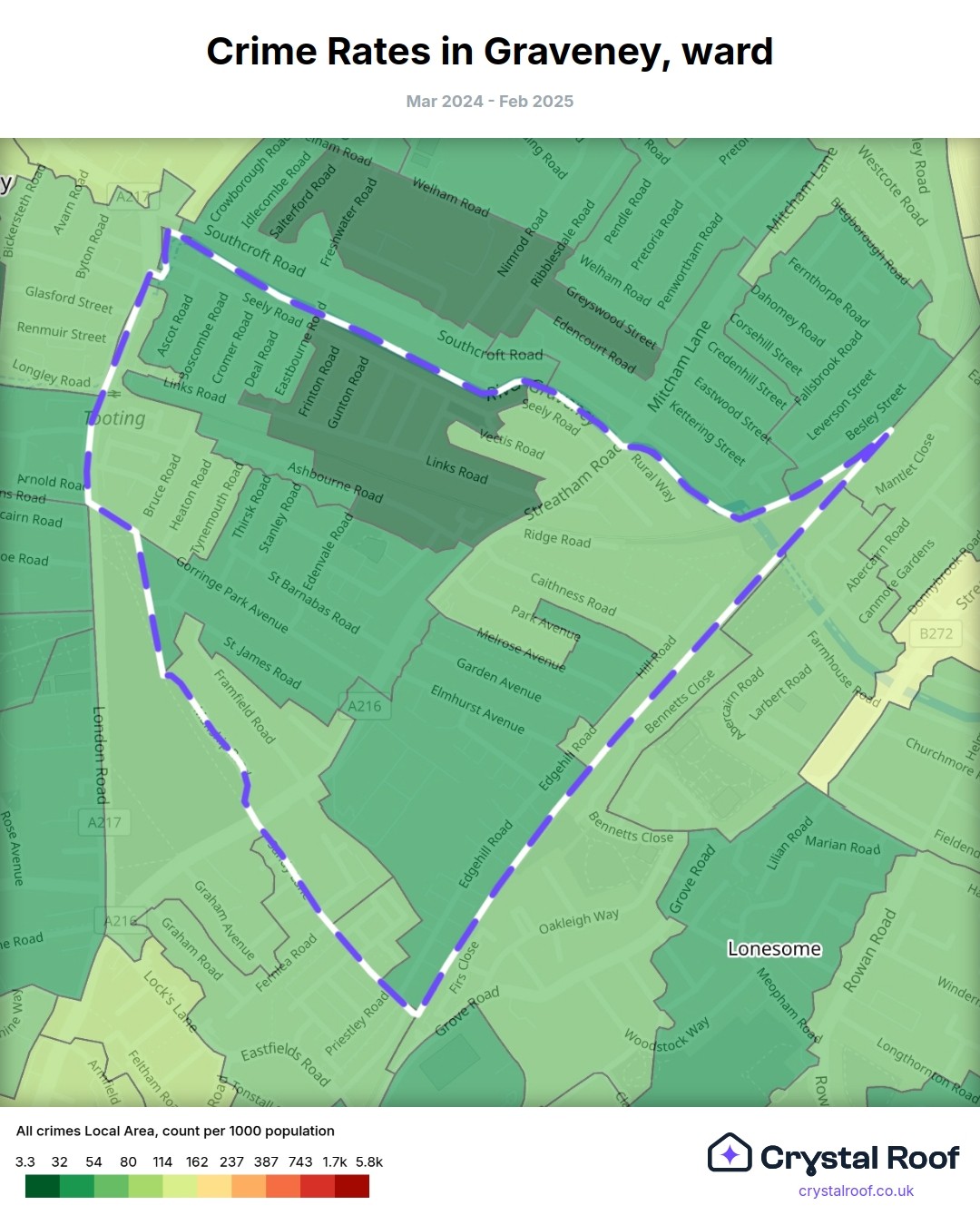 Graveney, (ward) includes areas with the following crime ratings (see map):