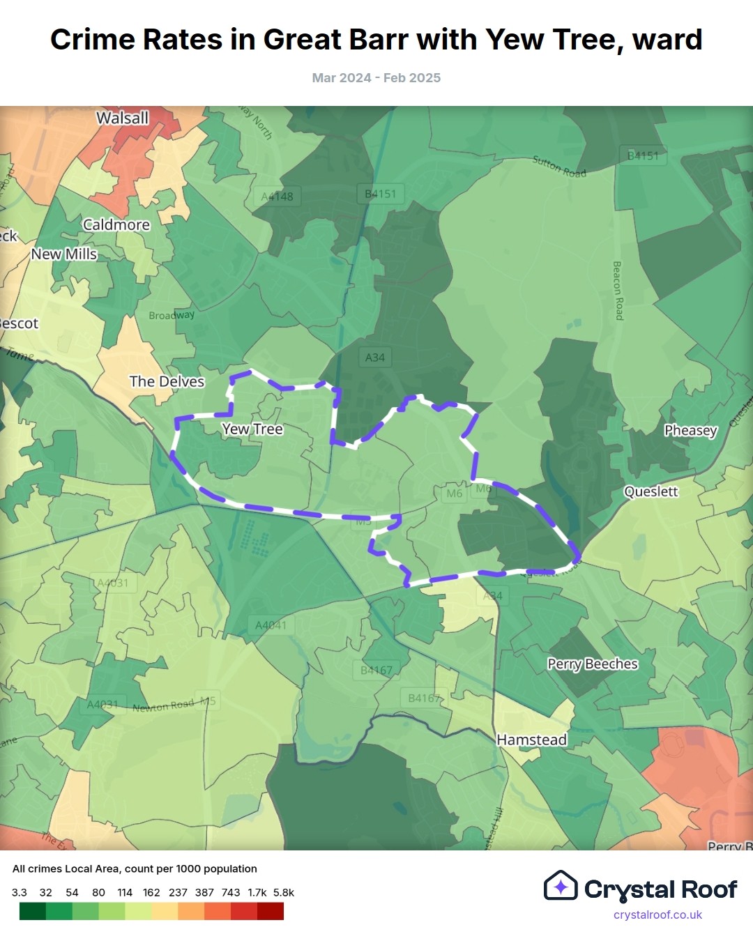 Great Barr with Yew Tree, (ward) includes areas with the following crime ratings (see map):