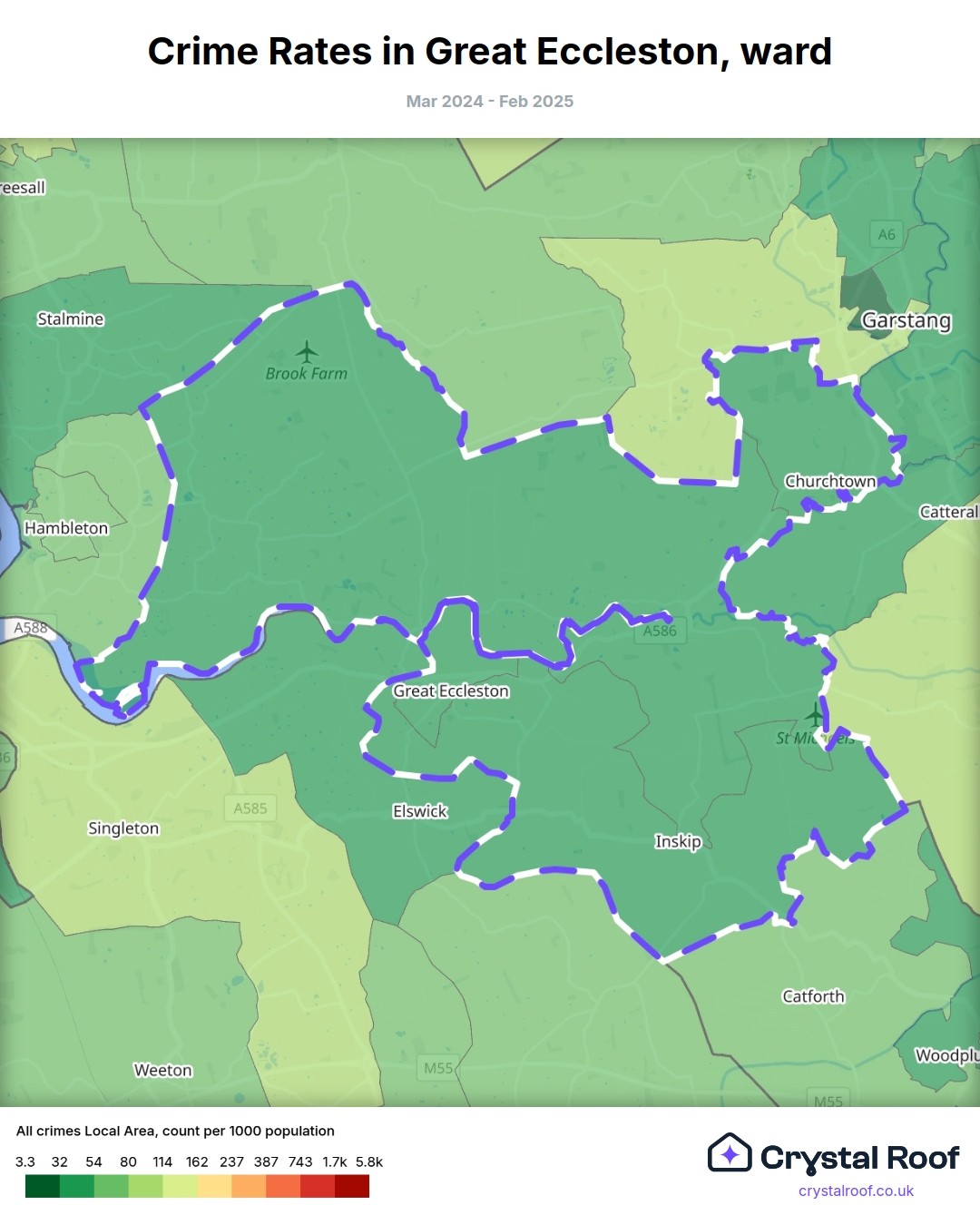 Great Eccleston, (ward) includes areas with the following crime ratings (see map):