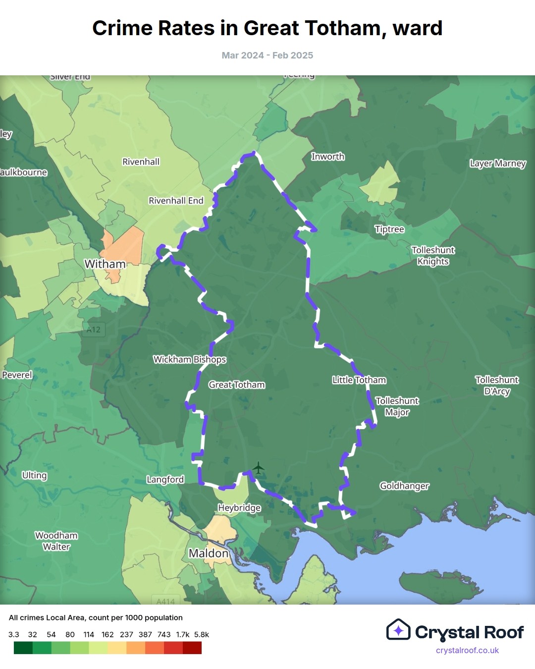 Great Totham, (ward) includes areas with the following crime ratings (see map):