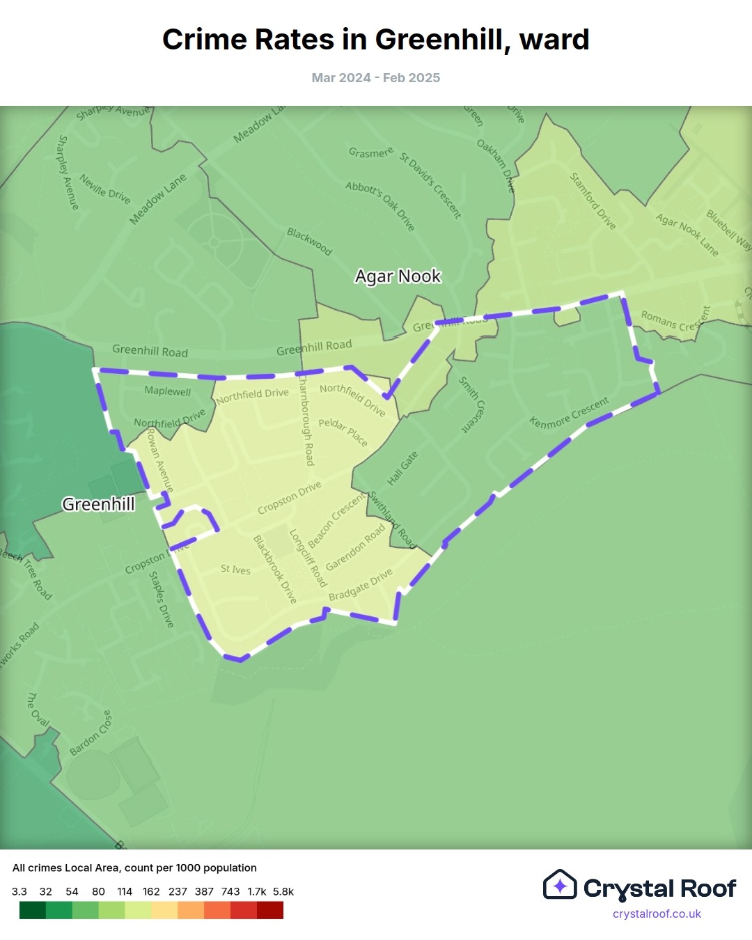 Greenhill, (ward) includes areas with the following crime ratings (see map):