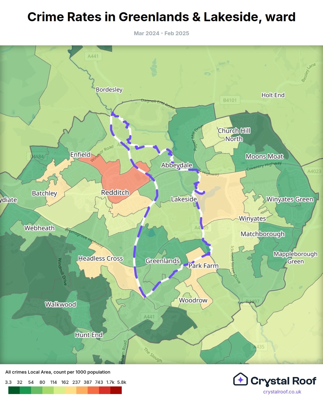 Greenlands & Lakeside, (ward) includes areas with the following crime ratings (see map):