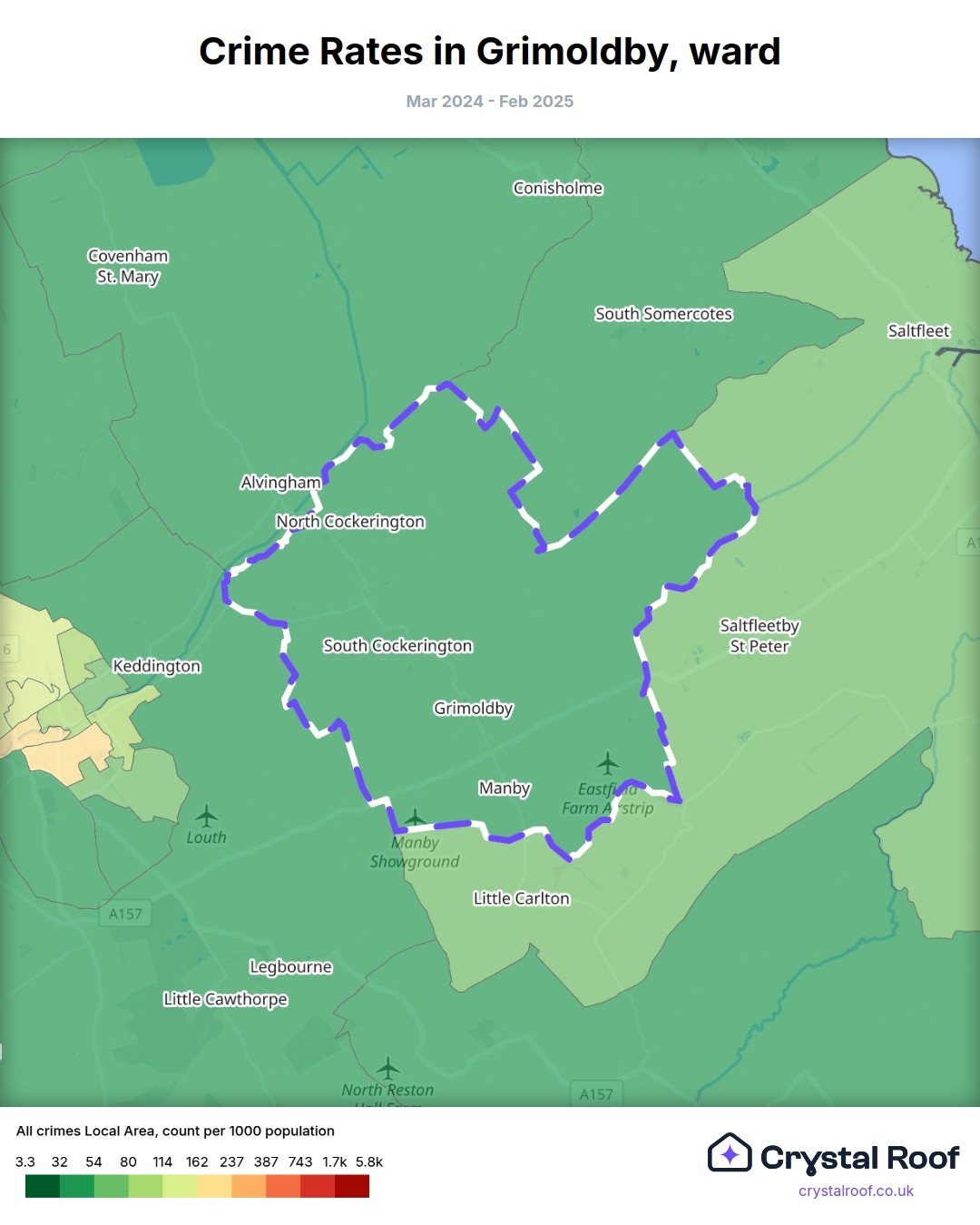 Grimoldby, (ward) includes areas with the following crime ratings (see map):
