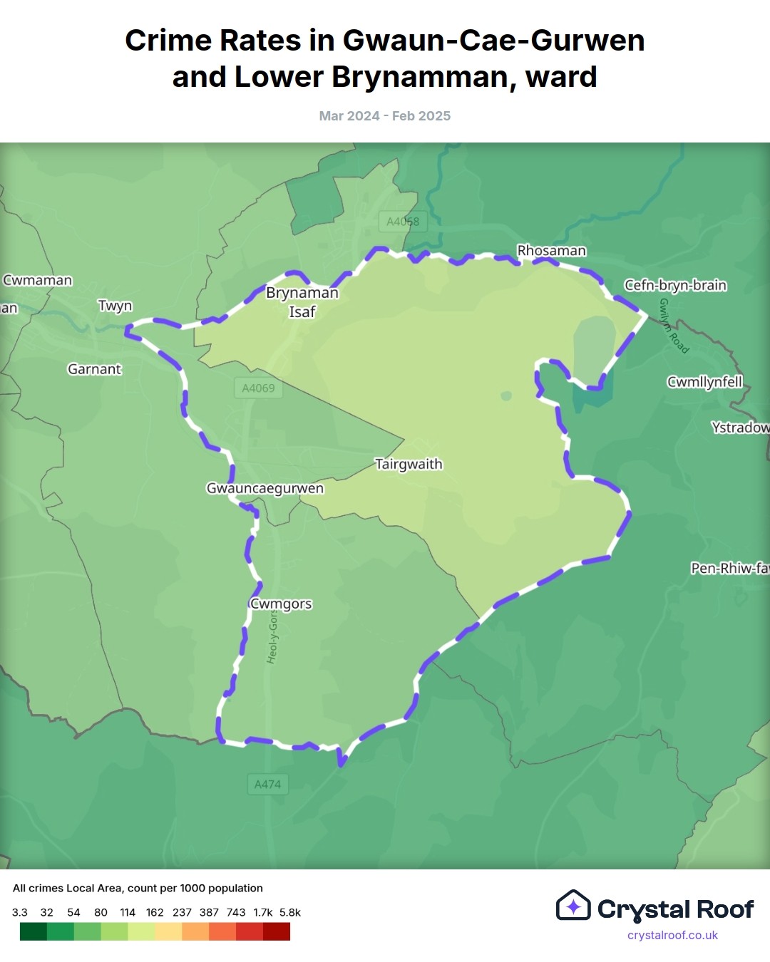 Gwaun-Cae-Gurwen and Lower Brynamman, (ward) includes areas with the following crime ratings (see map):