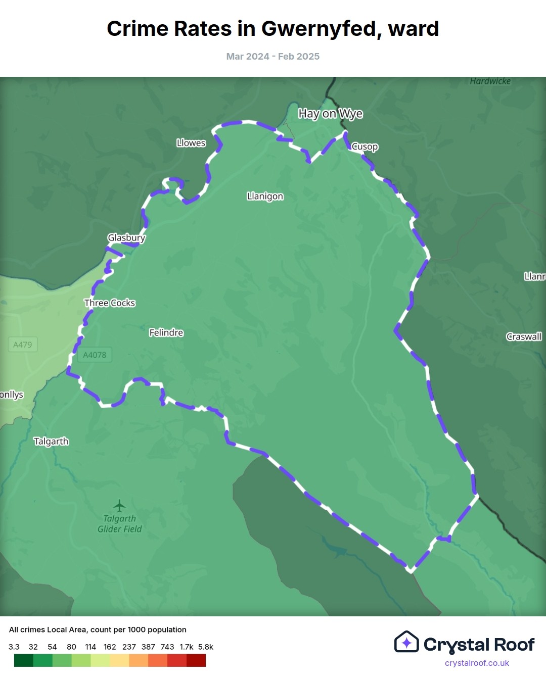Gwernyfed, (ward) includes areas with the following crime ratings (see map):