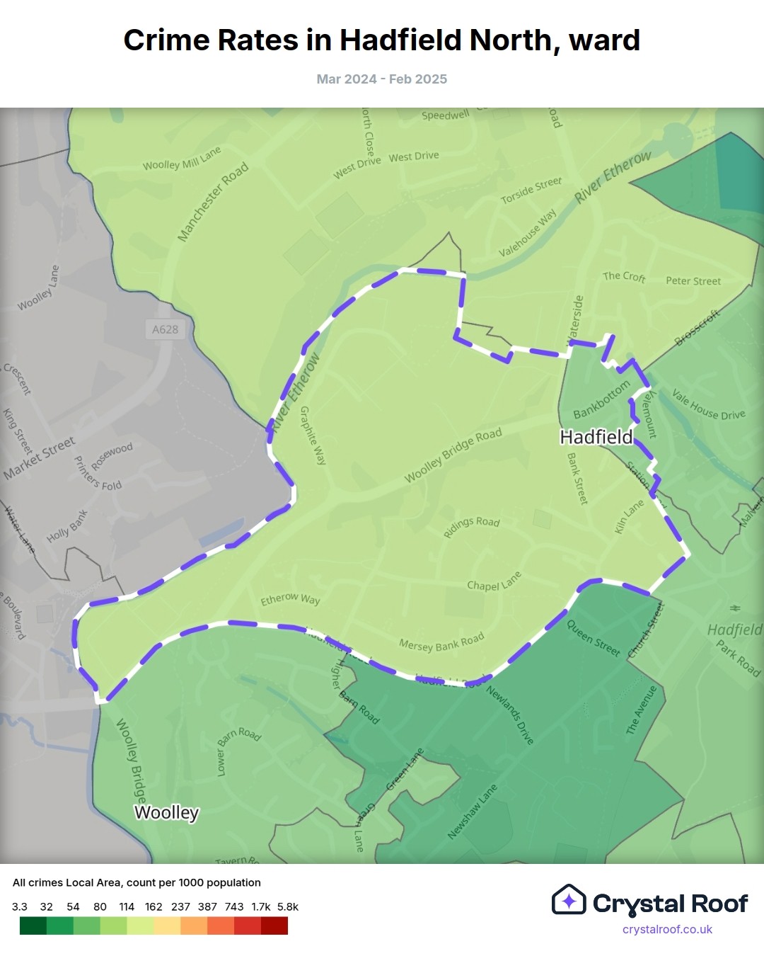 Hadfield North, (ward) includes areas with the following crime ratings (see map):